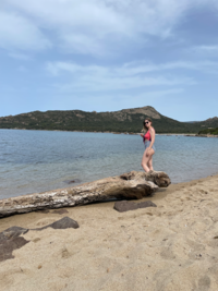 Nous avons pu nous installer le long des rochers à l’ombre, devant nous une étendue de sable quasiment déserte. A peine les pieds dans l’eau, que nous pouvions apercevoir des poissons. Après une session de palmes, masque et tuba, nous sommes allés manger une pizza.