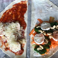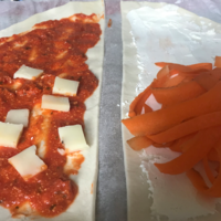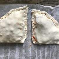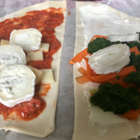 Pour finir j’ai fait deux chaussons un aux légumes (carottes, épinards, fromage de chèvre, noix de cajou) pour moi et un autre aux fromages pour Mathieu.