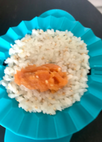 Pour le déjeuner nous avons fait des Onigiris. Ce sont des boulettes de riz collant fourrées. Nous avons choisi d’insérer une purée de patate douce épicée. Ce plat est super pratique, car les onigiris se conservent bien et sont pratiques à emmener dans sa lunch boxe.