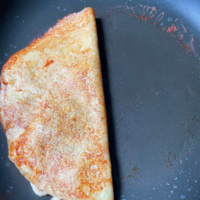La recette des Quesadillas est déjà sur le blog mais le montage est simple, wrap, fromage râpé, œufs brouillés, fromage râpé, wrap.